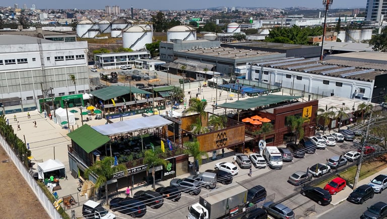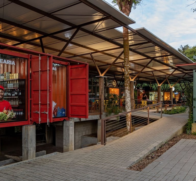 Beach clubs, food parks e arenas esportivas construídos com containers.